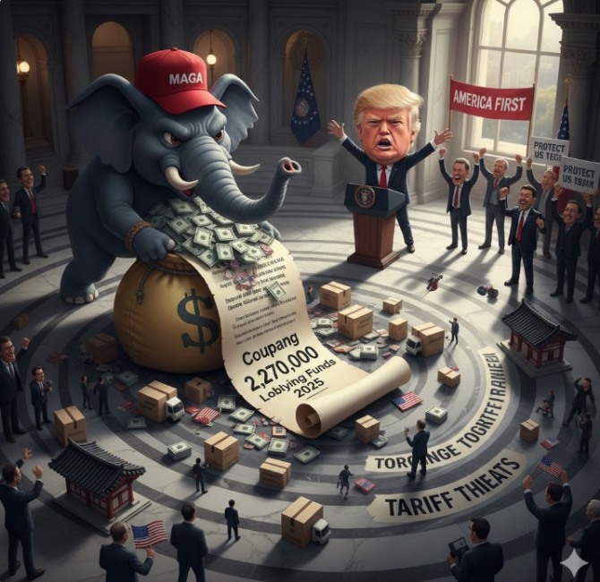 쿠팡의 워싱턴 영향력 확대는 숫자로도 증명된다. 공개된 자료에 따르면 쿠팡은 2025년 한 해 동안 로비 자금으로 총 227만 달러(약 33억 원)를 지출했다. 2024년에는 트럼프 대통령 취임위원회에 100만 달러(약 14억6000만 원)를 기부하며 김범석 의장이 취임식에 참석하기도 했다.