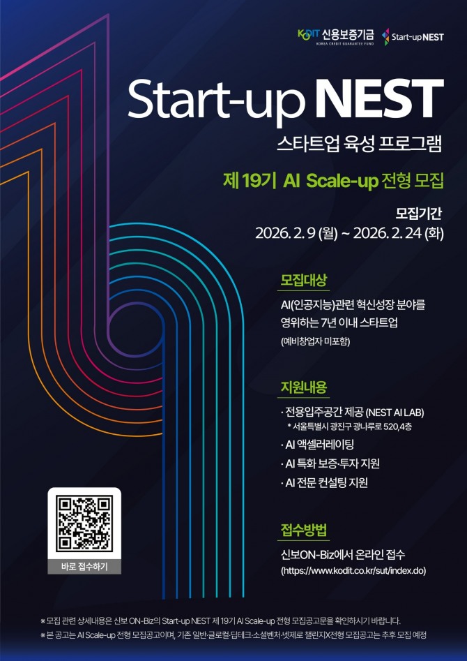 아울러, 신보의 AI 스타트업 전용 보육 공간인 ‘NEST AI LAB’ 입주 지원을 통해 AI 맞춤형 기술 멘토링, 연구기관 연계 기술사업화 지원 등 다양한 비금융 서비스를 제공하고, 해외진출, 대기업 등과의 오픈이노베이션도 추진한다.