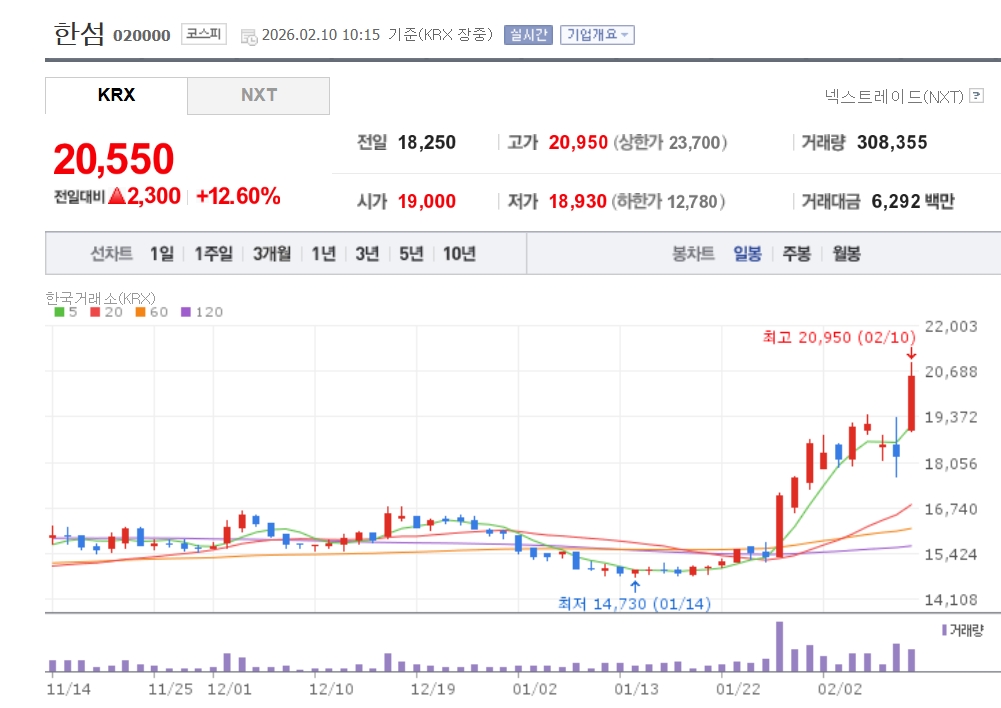 이미지 확대보기10일 한국거래소에 따르면 한섬은 오전 10시 15분 현재 전장보다 12.60% 오른 2만550원에 거래 중이다. 매수 상위 창구에는 외국계 증권사인 모건스탠리가 이름을 올리고 있다.