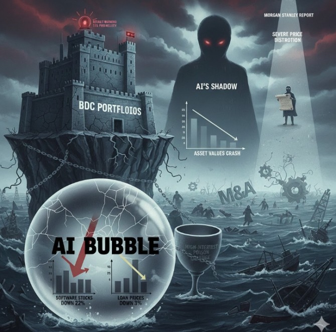 이미지 확대보기배런스는 지난 10일 보도를 통해 소프트웨어 기업의 주가와 대출 가격 사이의 기묘한 불일치를 조명하며, 이것이 곧 들이닥칠 신용 위기의 전조라고 분석했다. 모건스탠리 신용 전략팀은 지난 9일 발표한 보고서에서 소프트웨어 대출 시장의 가격 조정이 본격화할 것이며, 특히 중소기업 대출 비중이 높은 비즈니스개발회사(BDC)가 가장 큰 위험에 노출됐다고 지적했다.