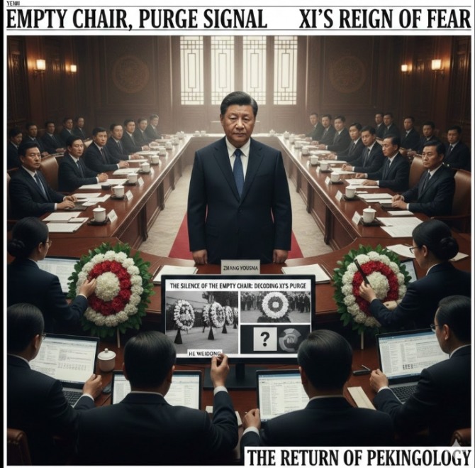 이 정교한 격자무늬에서 한 칸의 변화는 곧 권력 지형의 지각변동을 의미한다. 지난달 20일 열린 고위 관리 특별 세미나에서 장유샤 장군의 빈자리는 소셜 미디어를 통해 순식간에 '숙청설'로 번졌다. 24명 전원이 참석해야 하는 자리임에도 불구하고 장유샤를 포함한 일부 위원이 불참했기 때문이다.