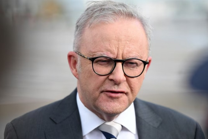 앤서니 알바니즈 호주 총리가 2025년 7월 12일 중국 상하이 상하이 푸둥 국제공항에 도착한 후 기자회견하고 있다. 사진=로이터