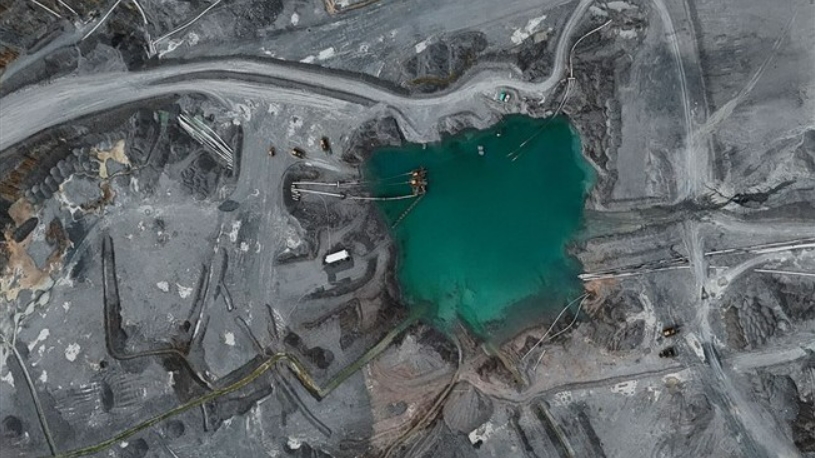 2025년 3월 21일, 파나마 도노소에서 캐나다 퍼스트 퀀텀 미네랄스가 소유한 광산 기자회 중 코브레 파나마 구리 노천광산 섬프의 항공 사진. 사진=AP/뉴시스이미지 확대보기