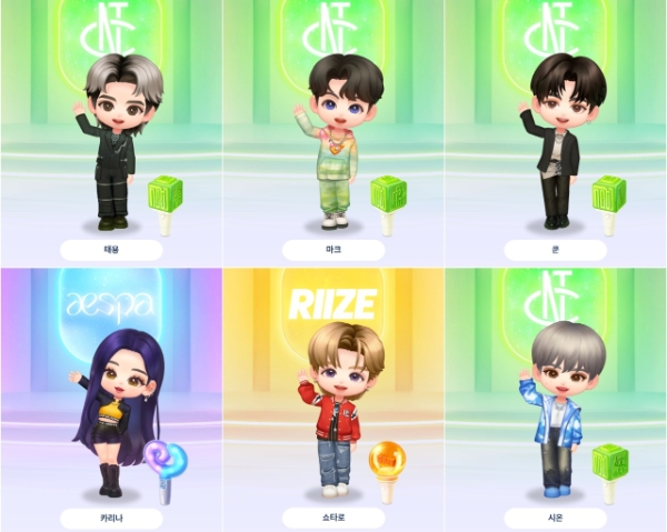 슴미니즈는 카카오게임즈 자회사 메타보라가 개발을 맡았다. SM 소속 아이돌 '엔씨티(NCT) 127'과 'NCT 드림', 'NCT 위시', '웨이션브이(WayV)', '라이즈(RIIZE)', '에스파(aespa)' 6개 그룹이 게임에 등장한다.