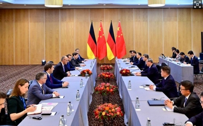 일본의 경제지 니케이가 2월 25일(현지시각) 전한 바에 따르면 프리드리히 메르츠 독일 총리는 이날 베이징에서 시진핑 중국 국가주석과 회담을 갖고 양국 간의 경제 파트너십을 안정화하기 위한 방안을 논의했다. 시 주석은 이 자리에서 중국의 발전 기회를 독일과 계속 공유할 것이라며, 독일이 중국의 발전을 객관적이고 이성적으로 바라봐 줄 것을 당부했다. 이는 미국 주도의 중국 배제 움직임에 맞서 유럽의 핵심 축인 독일을 우군으로 확보하려는 의도로 보인다.