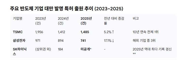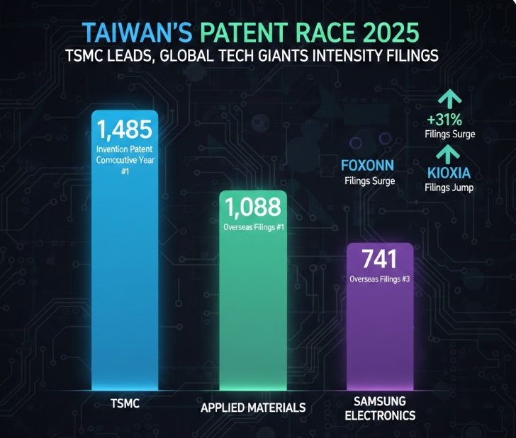 대만 지식재산국(TIPO) 2025년 통계 분석 — TSMC 10년 왕좌, 어플라이드 머티리얼즈·도쿄일렉트론·삼성전자 3파전으로 번지다