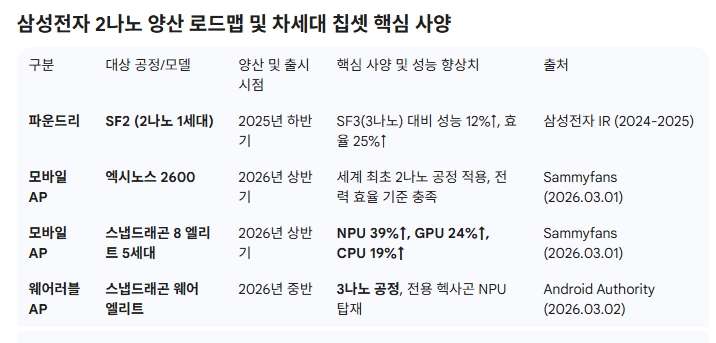 이미지 확대보기삼성전자가 차기 주력 스마트폰 갤럭시 S26 시리즈에 자체 개발 애플리케이션프로세서(AP)인 엑시노스 2600을 탑재하기로 결정했다. 세계 최초로 2나노미터(nm) 공정을 적용한 이 칩은 삼성 파운드리의 기술력 증명과 AP 자급화라는 두 마리 토끼를 동시에 겨냥하고 있다. 반면 갤럭시 워치 차기작에는 퀄컴의 '스냅드래곤 웨어 엘리트'를 새로 채택해, 기기별 최적 칩을 선별 적용하는 교차 전략으로 경쟁력 강화에 나선다.