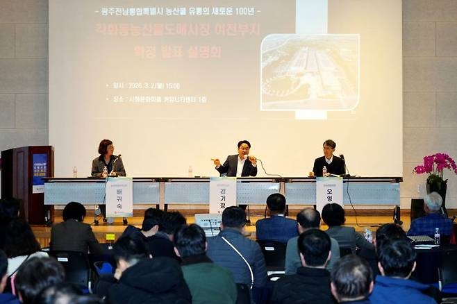 이번 설명회에서는 지난해 10월 열린 1차 주민설명회 이후 추진 경과와 부지 선정 결과를 설명하고, 광주전남 통합 추진에 따른 도매시장의 역할과 미래 비전을 공유했다.