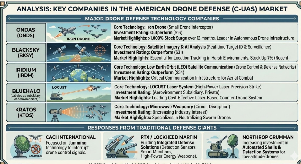 록히드 마틴(Lockheed Martin), RTX, 노스롭 그루먼(Northrop Grumman) 등 전통적인 방산 대형주들도 드론 탐지 레이더부터 스마트 대응 탄약까지 전방위 투자를 확대하고 있다.