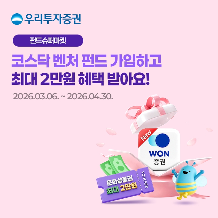 대상 상품은 다올자산운용의 '다올코스닥벤처증권투자신탁(S)', 하나자산운용의 '하나코스닥벤처기업&공모주(S)', 현대인베스트먼트자산운용의 '현대인베스트코스닥벤처증권투자신탁1호(S)' 등 3종이다. 각 운용사 펀드별로 중복 지급도 가능하다. 이벤트 참여 고객은 오는 5월 31일까지 잔고를 유지해야 하며 경품은 6월 중 모바일 상품권 형태로 지급된다.