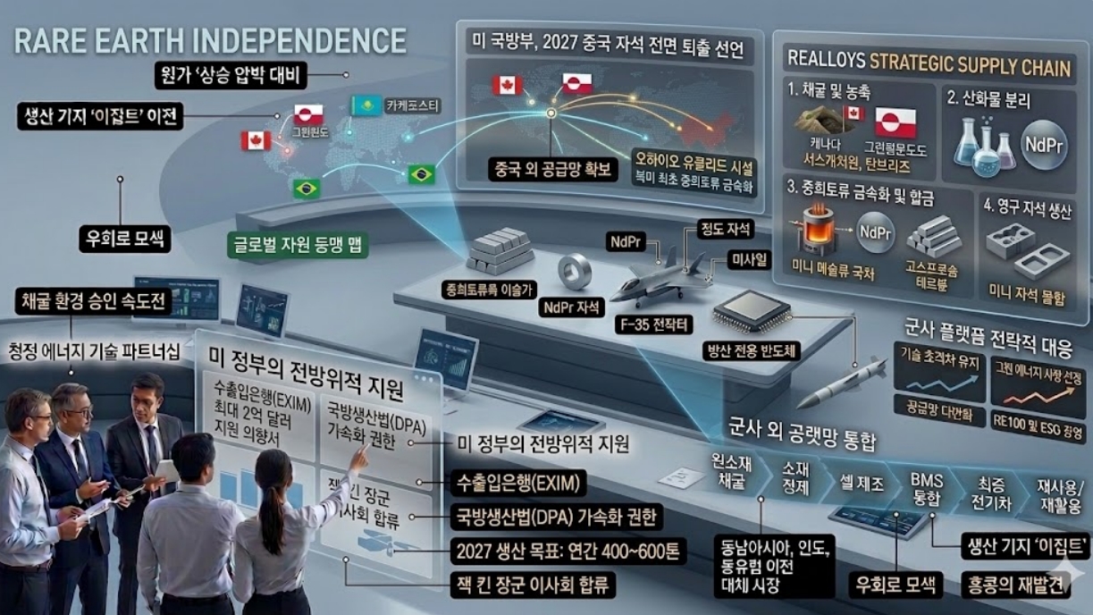 희토류 자석은 전기차 전동모터와 로봇 관절의 핵심이다. 미국의 국방 표준이 민간 영역으로 확산될 경우, 한국 자동차와 로보틱스 기업들도 '탈중국 희토류 금속' 확보 전쟁에 뛰어들어야 한다.