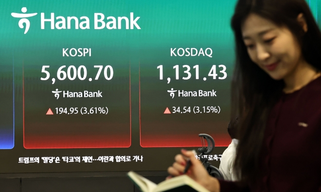 24일 서울 중구 하나은행 딜링룸 현황판에 코스피 지수 등이 표시되고 있다. 사진=연합뉴스 이미지 확대보기