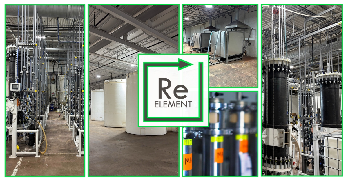 리엘리먼트 로고와 미국 분리정제시설. 사진=미쓰비시머티리얼