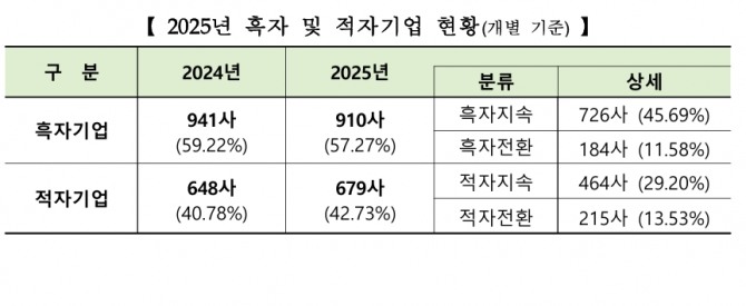 코스닥시장 2025년 흑자 및 적자기업 현황 자료=한국거래소