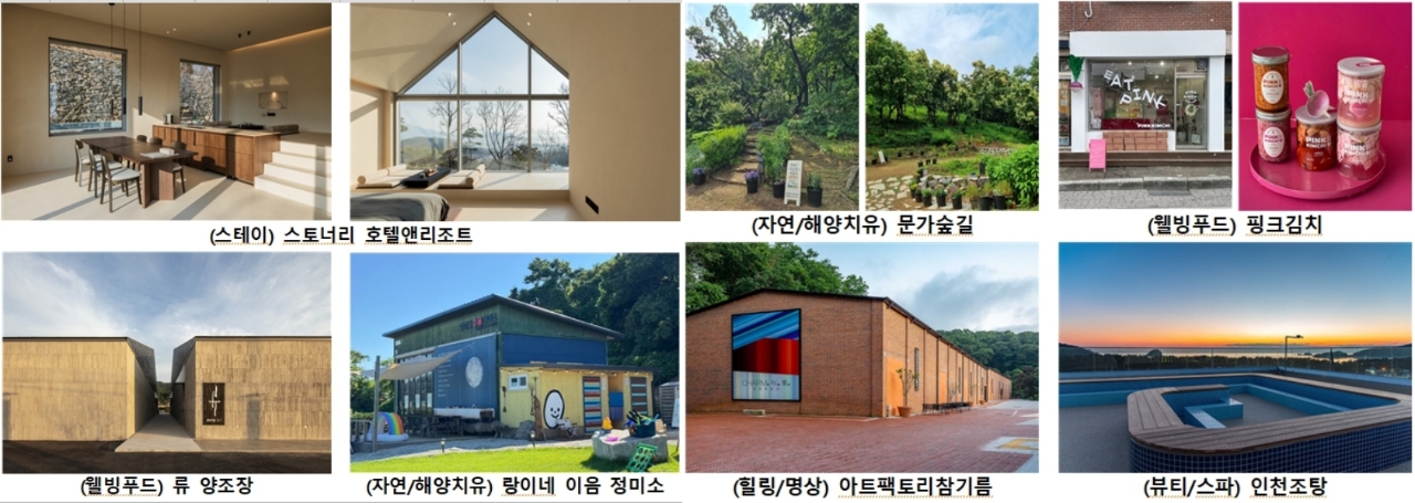 올해 신규 웰니스 관광지로는 △류양조장(강화, 웰빙푸드) △스토너리 호텔앤리조트(강화, 스테이) △랑이네 이음 정미소(강화, 자연·해양치유) △㈜농업회사법인 문가숲길(남동구, 자연·해양치유) △아트팩토리참기름 강화(강화, 힐링·명상) 등 5곳이 선정됐다.