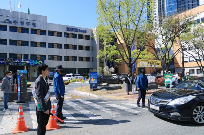 이미지 확대보기수성구는 최근 공영주차장을 중심으로 ‘승용차 5부제’ 참여를 독려하는 현장 안내를 진행했다고 8일전했다. 구청 주차장 입구에서는 민원인을 대상으로 제도 안내와 함께 참여 방법을 설명하며 자발적인 동참을 요청했다.