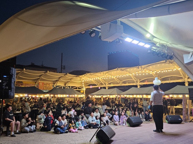 많은 방문객들로 북적인 군위전통시장 야시장에서 공연이 진행되고 있다. 사진= 군위군이미지 확대보기
