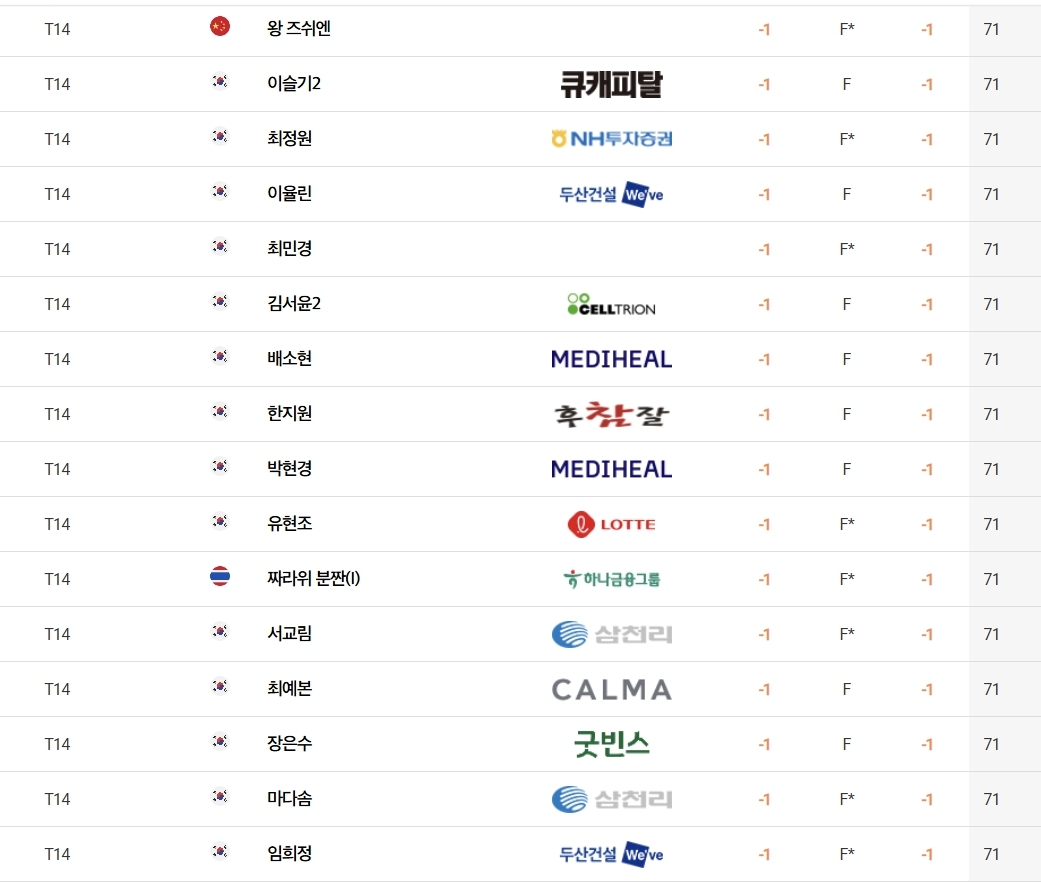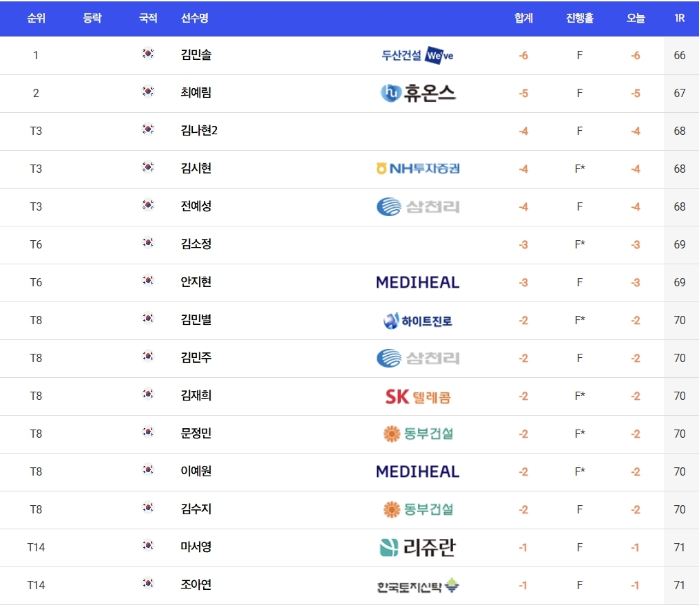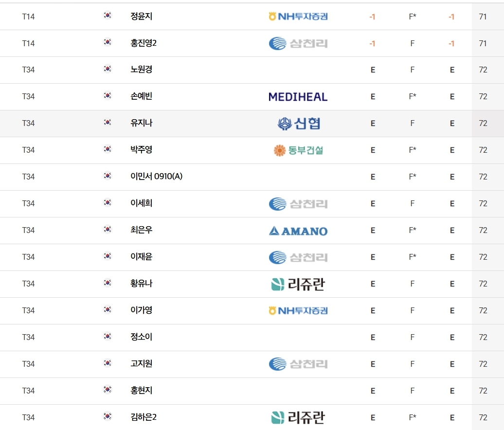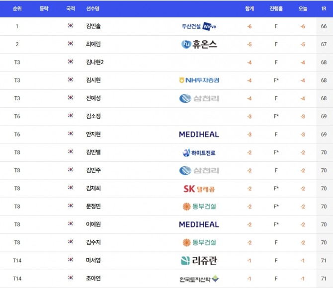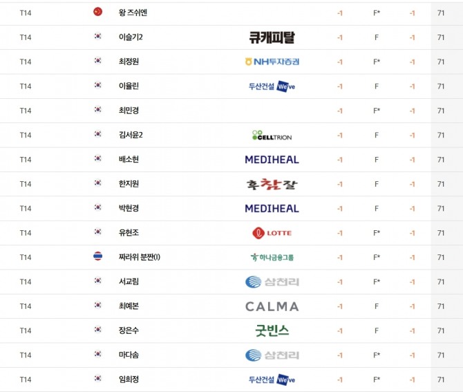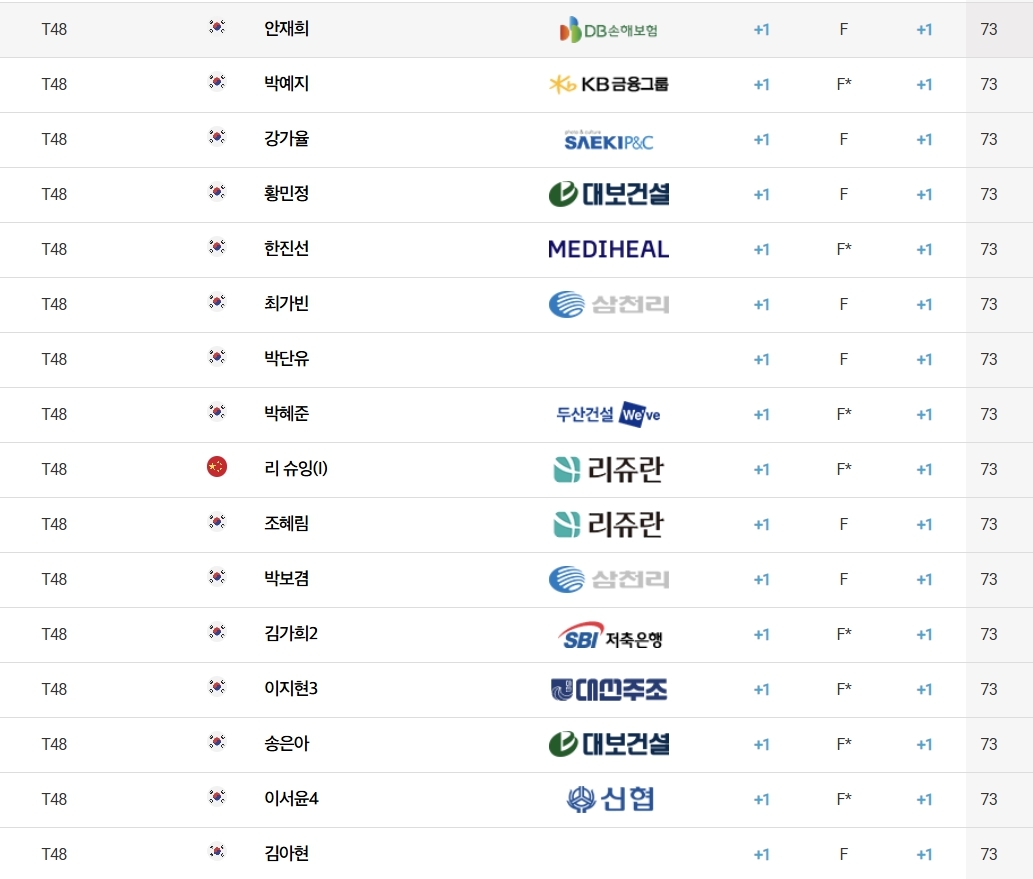 박혜준(두산건설 위브)은 1오버파 73타로 손목부상으로 재활중인 성유진(대방건설), 이서윤4(신협) 등과 공동 48위에 그쳤다.