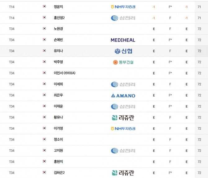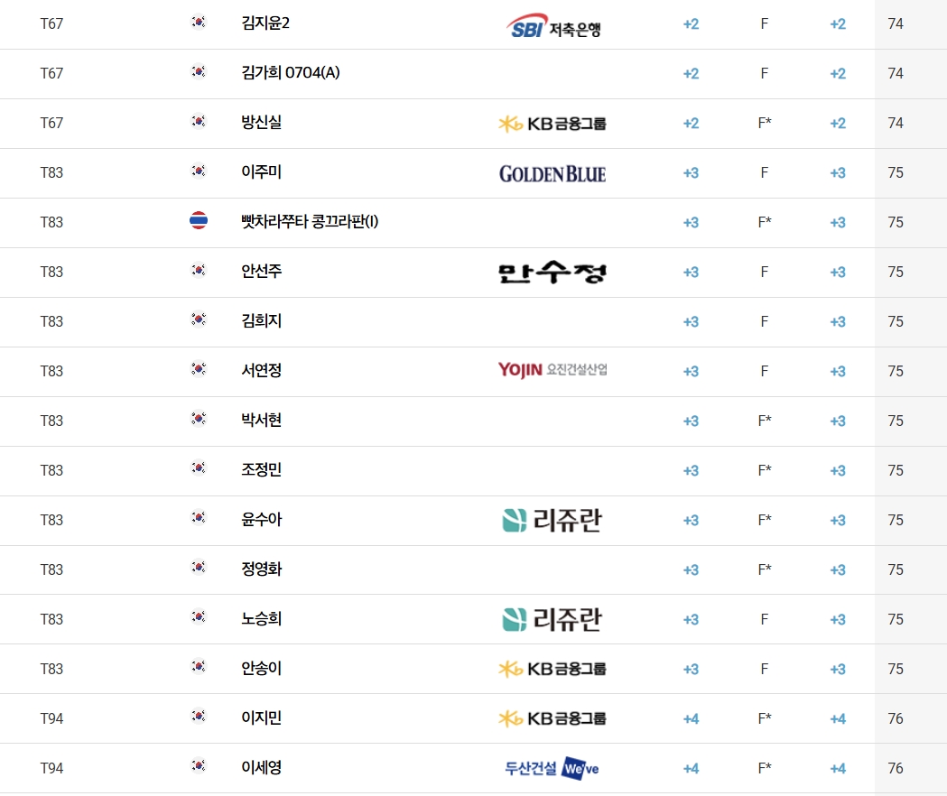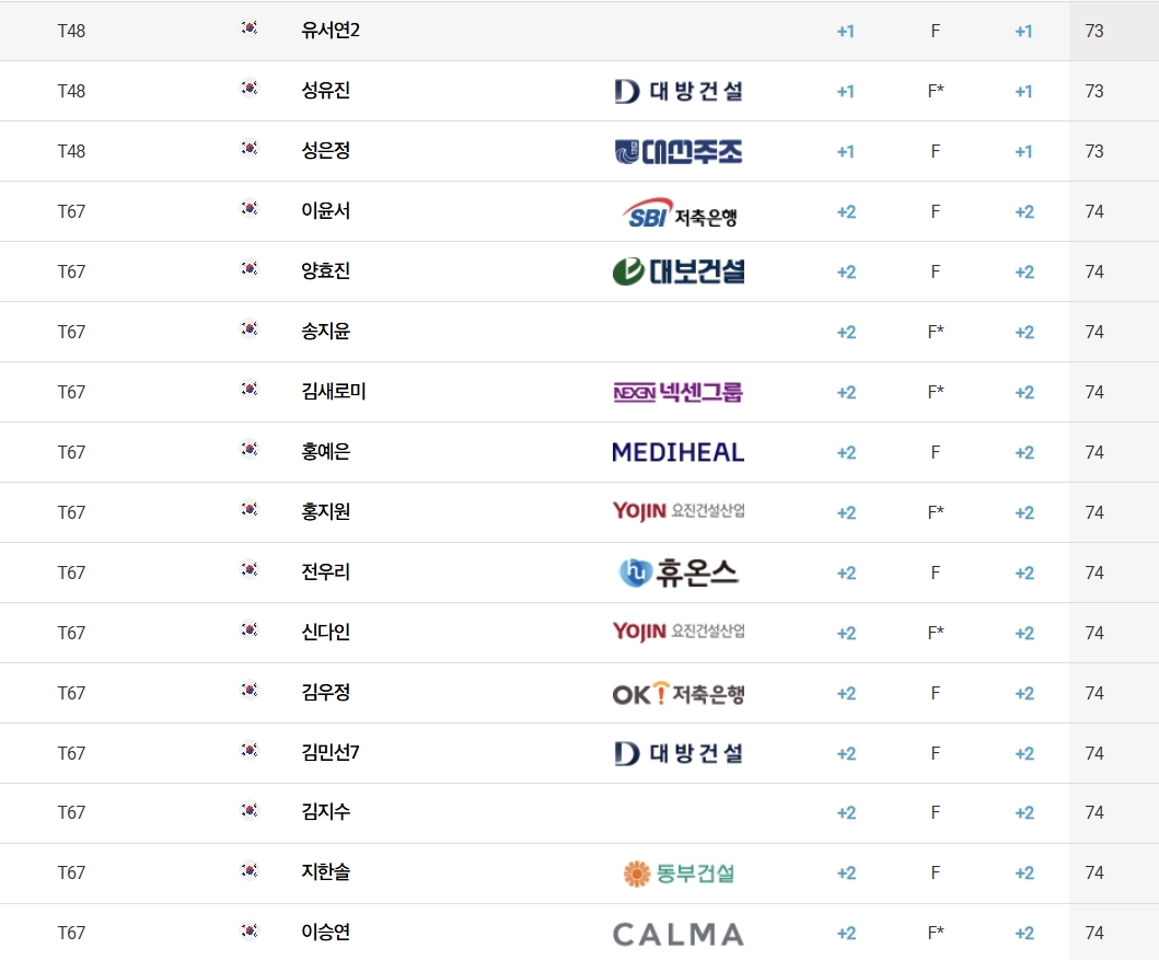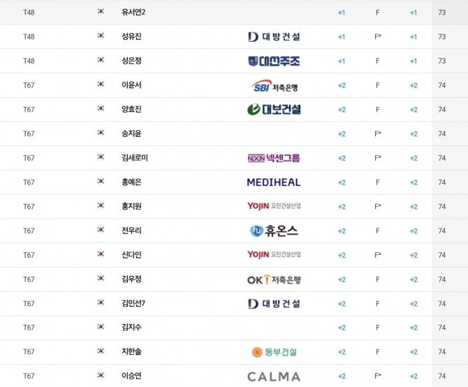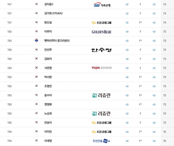 지난주 컷탈락한 방신실(KB금융그룹)은 2오버파 74타로 공동 69위, 노승희(리쥬란)은 3오버파 75타로 컷 통과를 걱정하게 됐다.