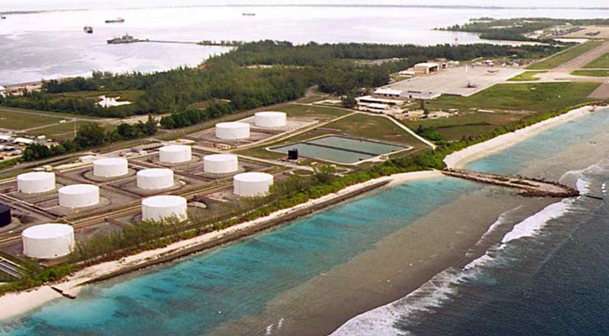 차고스 제도에서 가장 큰 섬이자 인도양 한가운데 주요 미군 기지가 있던 디에고 가르시아의 군용 비행장 가장자리에 있는 연료 탱크 파일 사진으로, 1966년에 영국으로부터 임대되었다. 사진=로이터