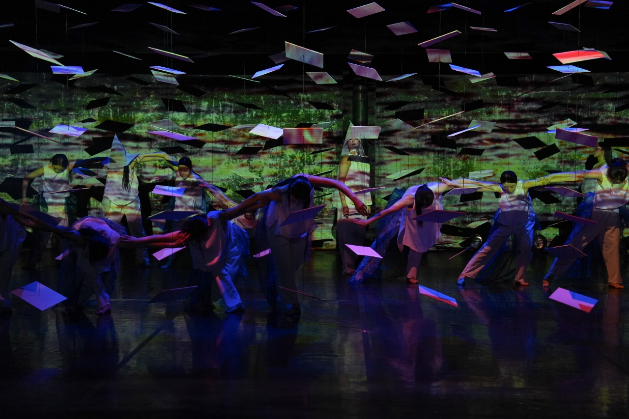 '까마귀 탱고Ⅱ'에서 붉은 천 위를 이리저리 가로지르는 무용수들의 감정을 혼돈의 이미지 영상과 불규칙한 분자로 시각화하여 무대라는 물리적 공간을 심리적 판타지의 영역으로 탈바꿈시켰다. '고래왈츠'는 무대장치 등의 협업으로 자연에 대한 경외감을 형상화했다. 무대 위, 크고 작은 오브제에 영상이라는 빛이 비치는 순간, “보이지 않는 어두운 심해 속에 묵묵히 자신의 삶을 살아가는 고래의 존재가 드러나며, 그가 품은 희망의 불빛”이 표현되었다.