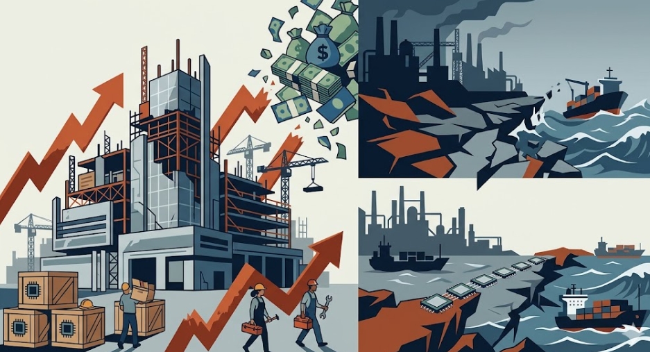 중국의 저가 공세가 거세지는 상황에서 미국의 비용 상승은 치명적이다. FT 수마야 케인스 칼럼니스트는 "과거 중국 쇼크가 소비재 중심이었다면, 현재는 반도체·전기차 등 고부가가치 산업이 타깃"이라고 짚었다. 중국이 막대한 보조금으로 저가 수출을 밀어내는 동안, 미국은 높은 인건비와 공사비에 발목이 잡힌 형국이다.